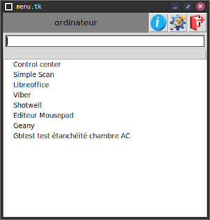 Lors d'un clic sur le bouton du menu, j'exécute simplement le script menu.tk. Voici le résultat :