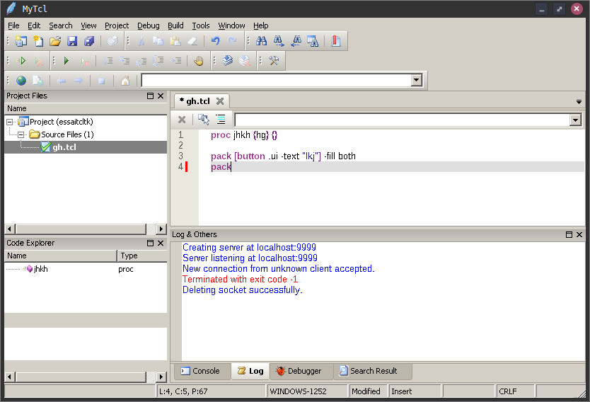 Mytcl est une IDE pour écrire du code Tcl tk.